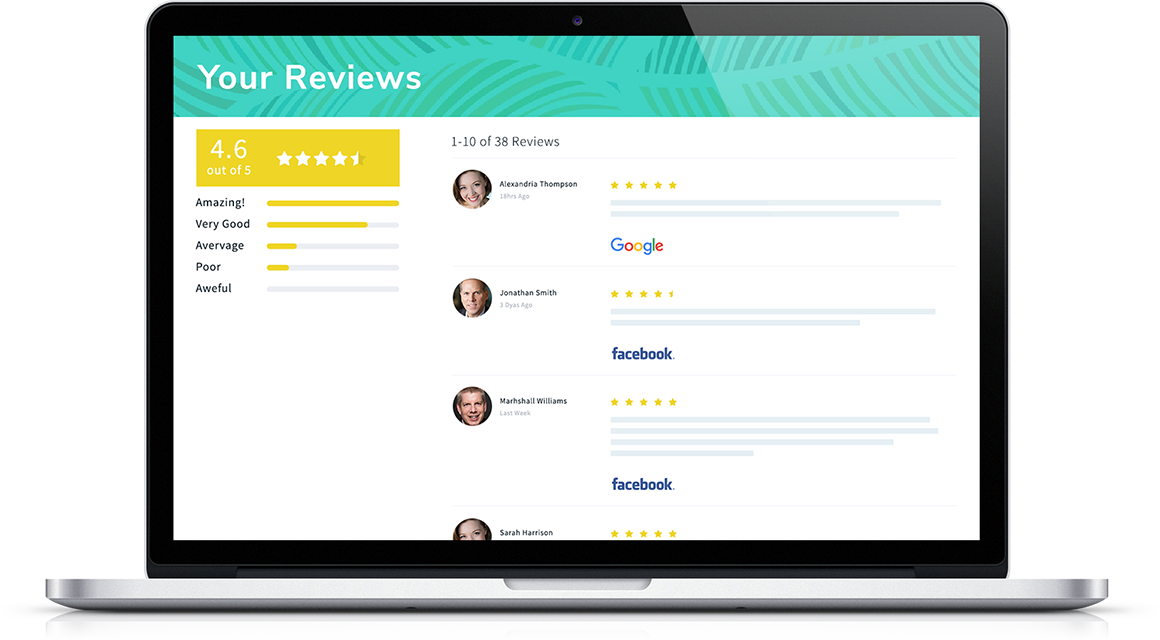 We can help put your online reviews directly on your website. We’ll automatically publish all of your 4 and 5-star reviews from Google and Facebook on your website.