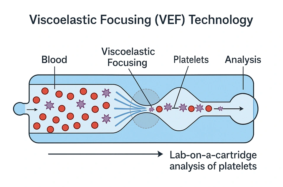 The RegeniSTAT™ Platelet Analyzer leverages AI-assisted Viscoelastic Focusing (VEF) technology to deliver lab-grade platelet analysis from just one drop of blood using a compact lab-on-a-cartridge system. This breakthrough allows real-time PRP assessment at the point of care, comparing platelet levels and quality to baseline values for tailored regenerative treatments. VEF enhances accuracy by aligning blood components by their mechanical traits, ensuring reproducibility and reducing variability. Unlike traditional centrifugation, VEF yields faster, more consistent results with minimal error. Its automated, space-saving design streamlines workflow in clinics and research settings, requiring no full lab setup. With built-in AI interpretation, RegeniSTAT™ empowers precision treatment decisions in orthopedics, wound care, and tissue regeneration.